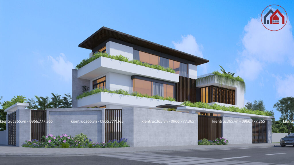 .Biệt thự lâu đài 3 tầng cổ điển được xây dựng trên một khu đất khang trang rộng lớn, nơi tâm điểm của mọi ánh nhìn để có thể khoe hết vẻ đẹp cầu kì mĩ miều của toàn bộ ngôi nhà.  Toàn bộ lâu đài mang một màu trắng tinh tế làm hài lòng bất kì ai khó tính nhất, hệ thống tiền sảnh được đậm tô màu vàng quý tộc, lâu đài còn  được làm đẹp bởi hệ thống mái mansard, mái vòm nhấp nhô mang lại linh hồn cho toàn bộ lâu đài. Lâu đài còn ấn tượng hơn bởi hệ thống cổng kiên cố, uy nghi, nửa mở nhằm có thể khoe nhà đẹp với bất cứ ai. Khi nhìn vào lâu đài dinh thự, chắc hẳn ai cũng muốn có cho mình một biệt thự lâu đài pháp như vậy.