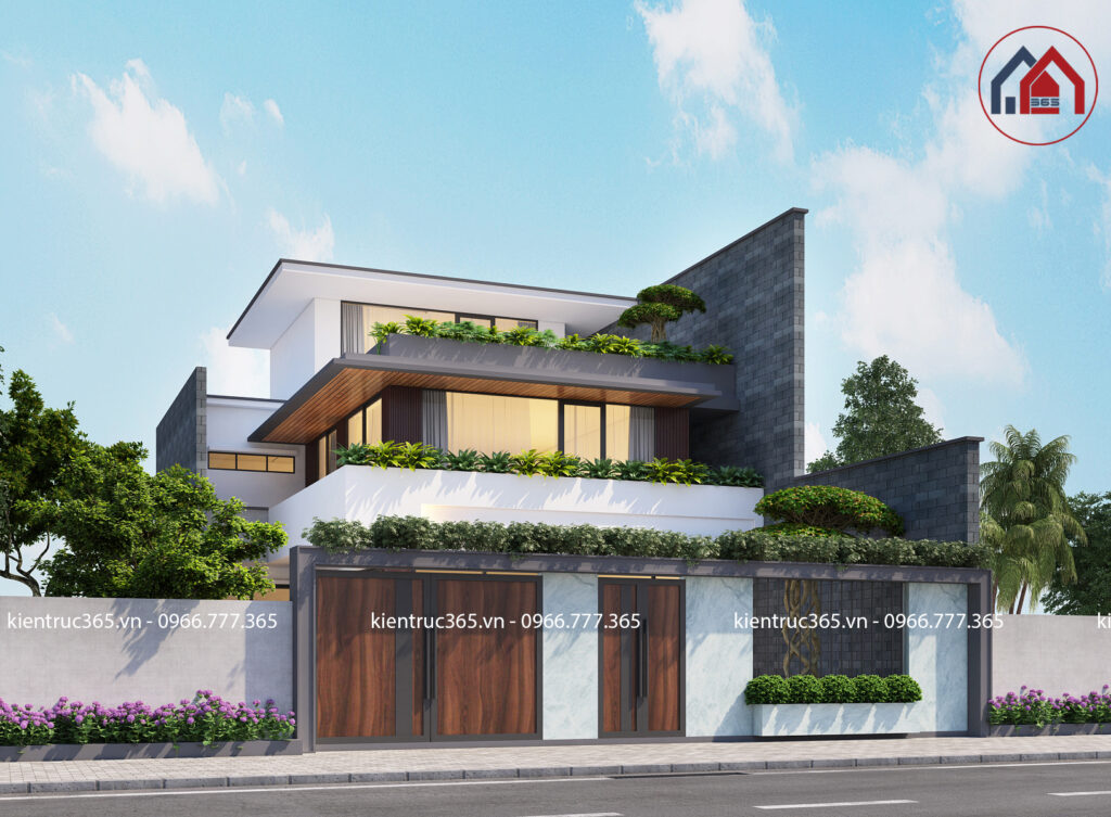 Bố cục đăng đối, uy nghi kết hợp với các họa tiết hoa văn uốn lượn mềm mại trên các đường phào, gờ chỉ tạo nên không gian ngoại thất tráng lệ và quyền thế. Hệ thống cột Hy Lạp to lớn uy nghi tạo cảm giác vững chãi kiên cố cho lâu đài kiến trúc Châu Âu. Thiết kế đăng đối khiến ngôi nhà cân xứng, bề thế và có vẻ đẹp bền lâu cùng năm tháng. Căn nhà thay gia chủ khẳng định đẳng cấp của bản thân, gia thế của gia tộc.